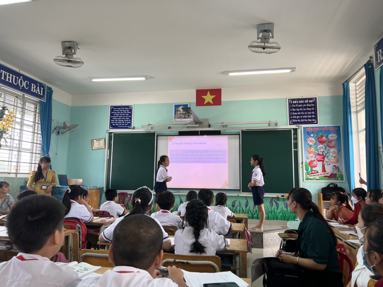 Thực hiện báo cáo chuyên đề và tiết dạy minh họa của Tổ lớp 5  (Chuyên đề: Giáo dục giới tính cho học sinh lớp 5) và Tổ Tiếng Anh – Hát nhạc (chuyên đề: Đổi mới phương pháp ôn tập bài hát cho học sinh lớp 3).
