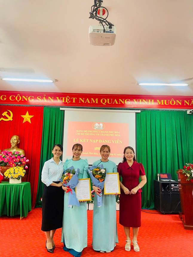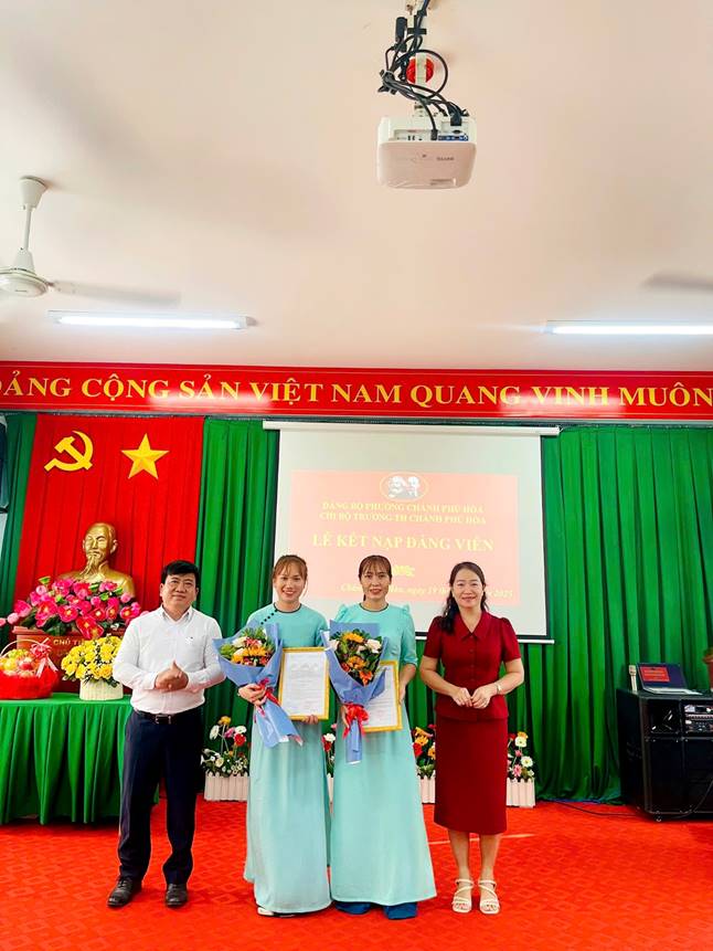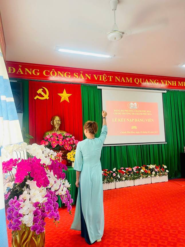 Hôm nay, ngày 19 tháng 2 năm 2025 được sự đồng ý của Đảng ủy phường Chánh Phú Hòa. Chi bộ trường Tiểu học Chánh Phú Hòa long trọng tổ chức lễ kết nạp Đảng viên cho 02 quần chúng Lê Thị Thương và quần chúng Phan Thị Phương Loan.
