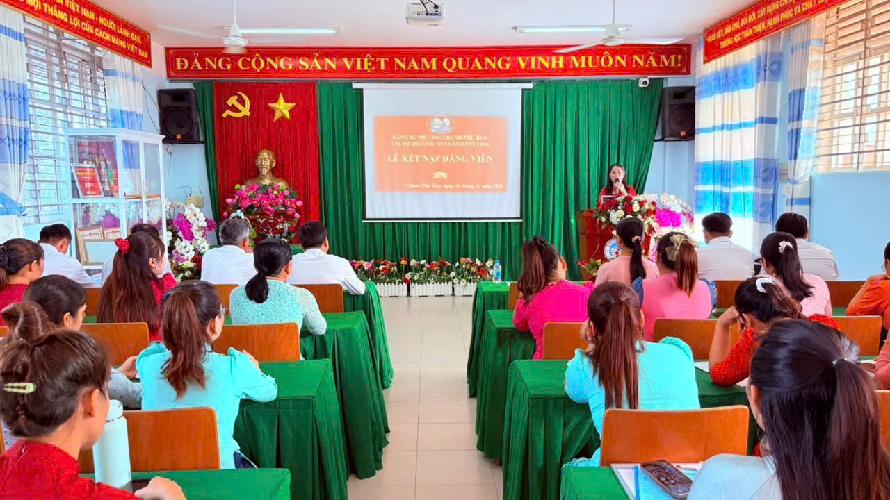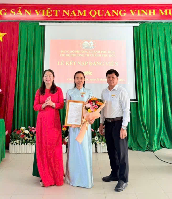 Thực hiện Quyết định số 182-QĐ/ĐU ngày 18/12/2025 của Đảng ủy phường Chánh Phú Hòa. Hôm nay, ngày 26 tháng 12 năm 2025, Chi bộ Trường Tiểu học Chánh Phú Hòa long trọng tổ chức Lễ kết nạp Đảng viên cho quần chúng ưu tú Lê Thị Út Trinh. Đây là kết quả của quá trình rèn luyện, phấn đấu không ngừng của quần chúng Lê Thị Út Trinh trong học tập, công tác và tu dưỡng phẩm chất đạo đức. Buổi lễ được tổ chức trong không khí trang nghiêm, đúng quy định của Điều lệ Đảng, thể hiện niềm vinh dự, tự hào của cá nhân đồng chí được kết nạp cũng như niềm vui chung của toàn thể đảng viên trong Chi bộ.