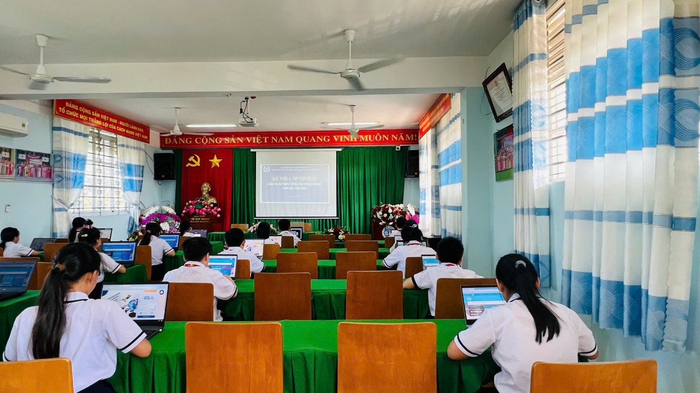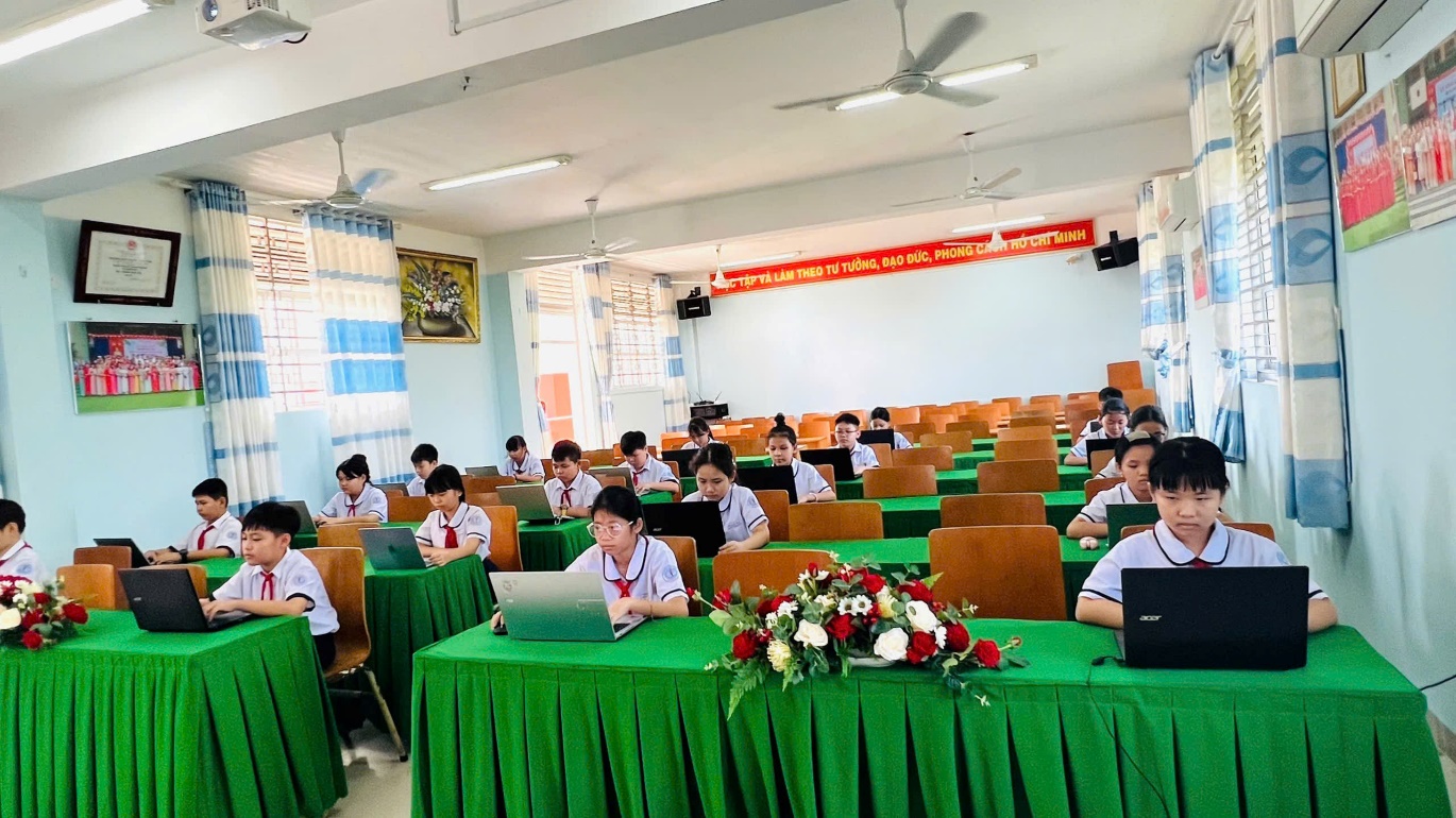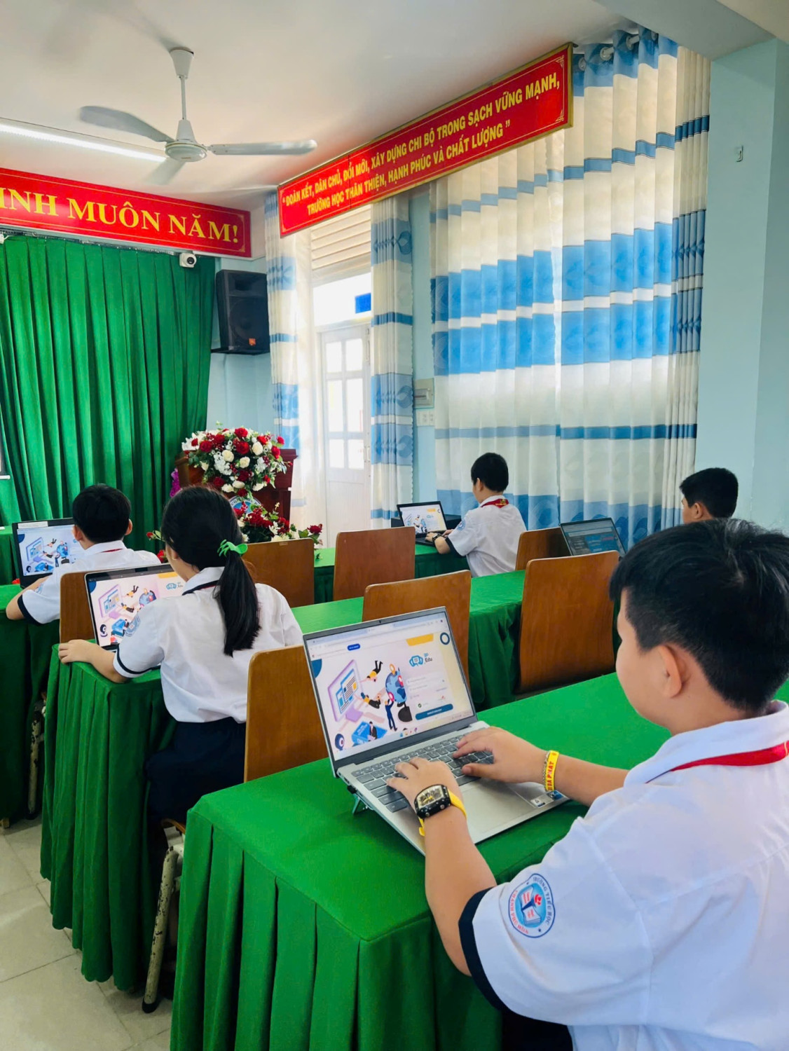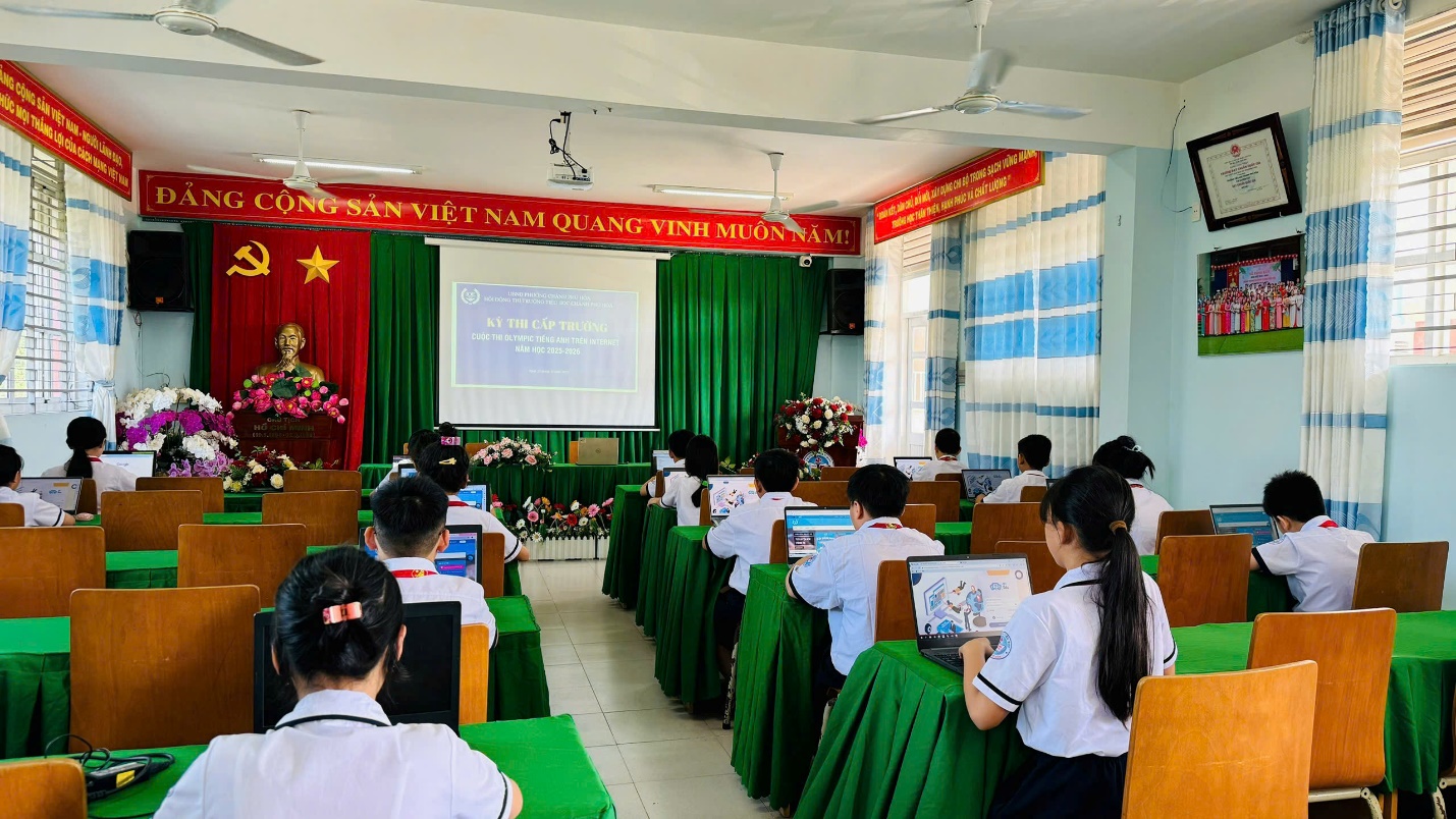 Hội thi diễn ra nghiêm túc, an toàn. Qua hội thi giúp học sinh rèn năng lực ngoại ngữ và kỹ năng thi trực tuyến.