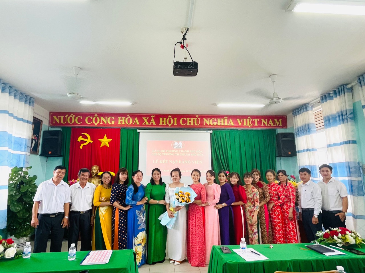 Thực hiện quyết định số 1561-QĐ/TU của Ban thường vụ Thị ủy Bến Cát ngày 18/8/2023, được sự nhất trí của Đảng ủy phường Chánh Phú Hòa. Hôm nay, ngày 24tháng8năm 2023, chi bộ Trường tiểu học Chánh Phú Hòa tiến hành tổ chức lễ kết nạp Đảng viên cho quần chúng Thái Bình Dương
