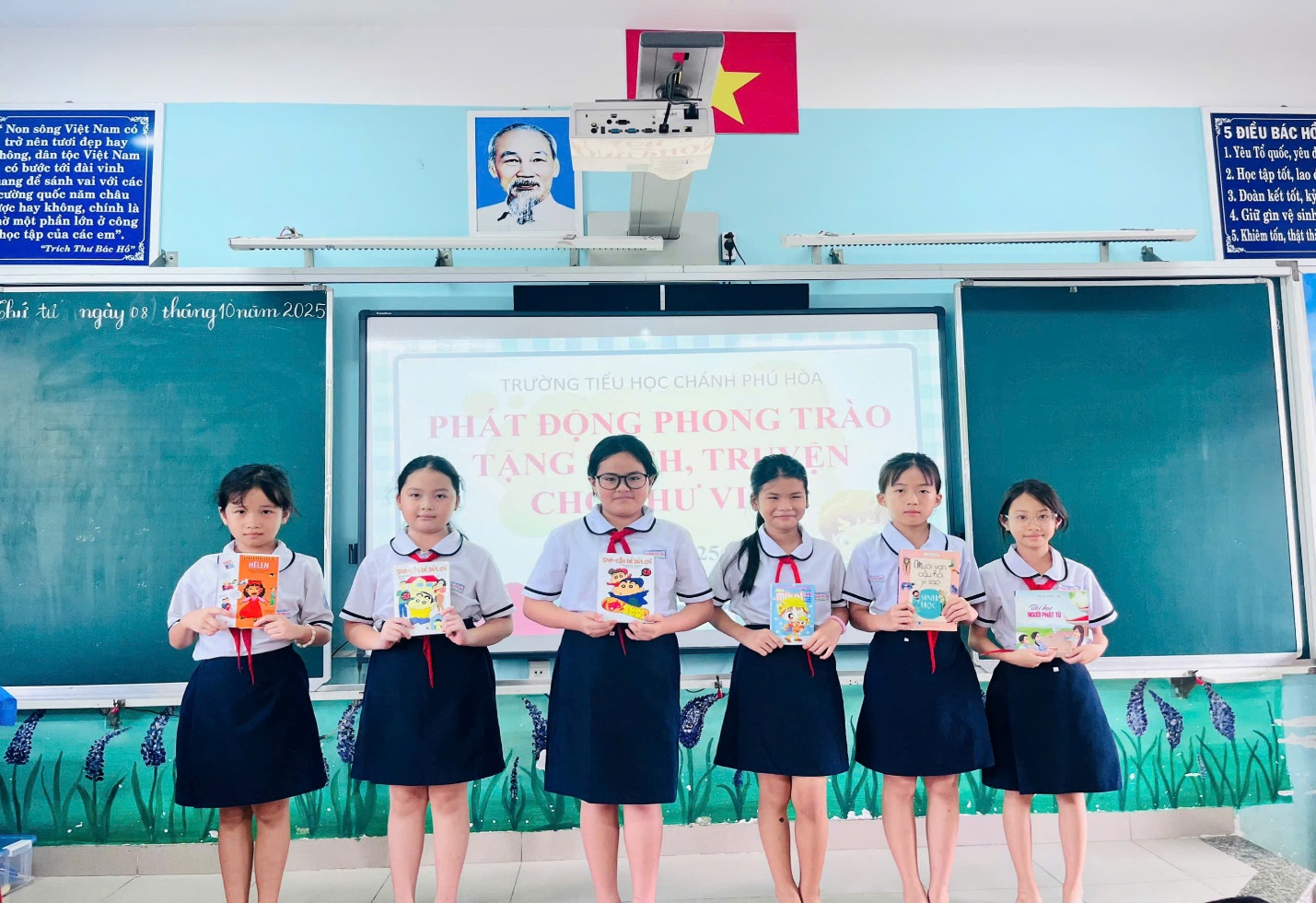 Các khối lớp tặng cho thư viện trường: khối 1: 420 quyển, khối 2: 122 quyển, khối 3: 194 quyển, khối 4: 180 quyển, khối 5: 129 quyển, tổng cộng 1045 quyển sách và truyện các loại, góp phần làm phong phú thêm kho sách của trường.
