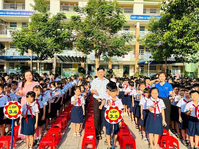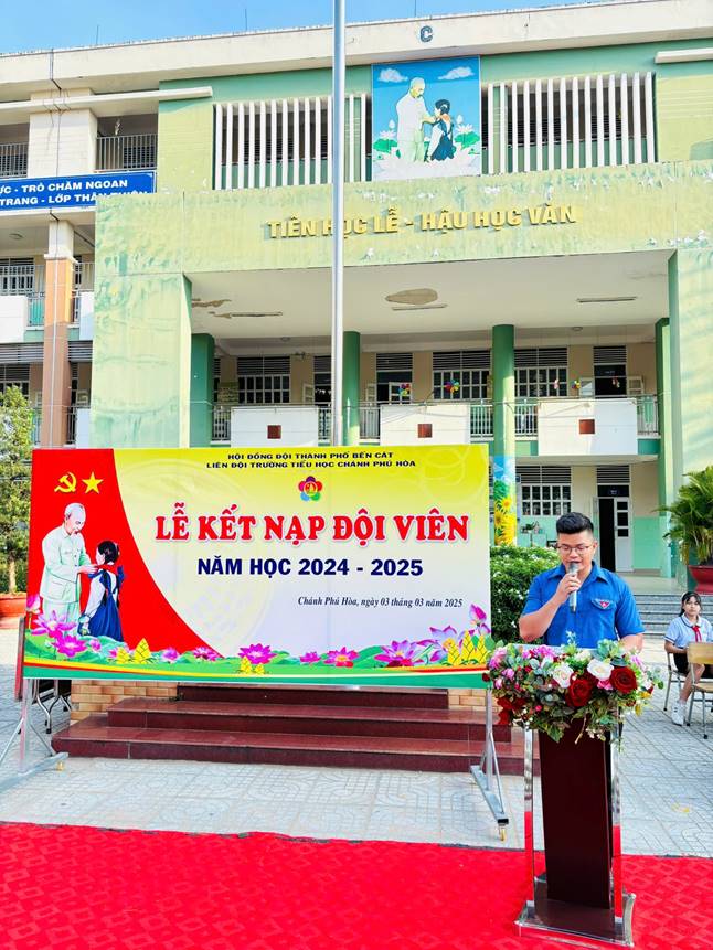 Sáng nay, trong không khí chào mừng Ngày Thành lập Đoàn TNCS Hồ Chí Minh. Liên Đội trường Tiểu học Chánh Phú Hòa đã tổ chức Lễ kết nạp Đội cho 488 em nhi đồng. Thay mặt Lãnh đạo nhà trường Cô Huỳnh Thị Kim Hoa - Bí thư chi bộ - Hiệu trưởng nhà trường đã chúc mừng và động viên các em học sinh luôn phấn đấu trong học tập và rèn luyện để trở thành “Con ngoan, trò giỏi, Đội viên xuất sắc”, xứng đáng với danh hiệu “Cháu ngoan Bác Hồ”.