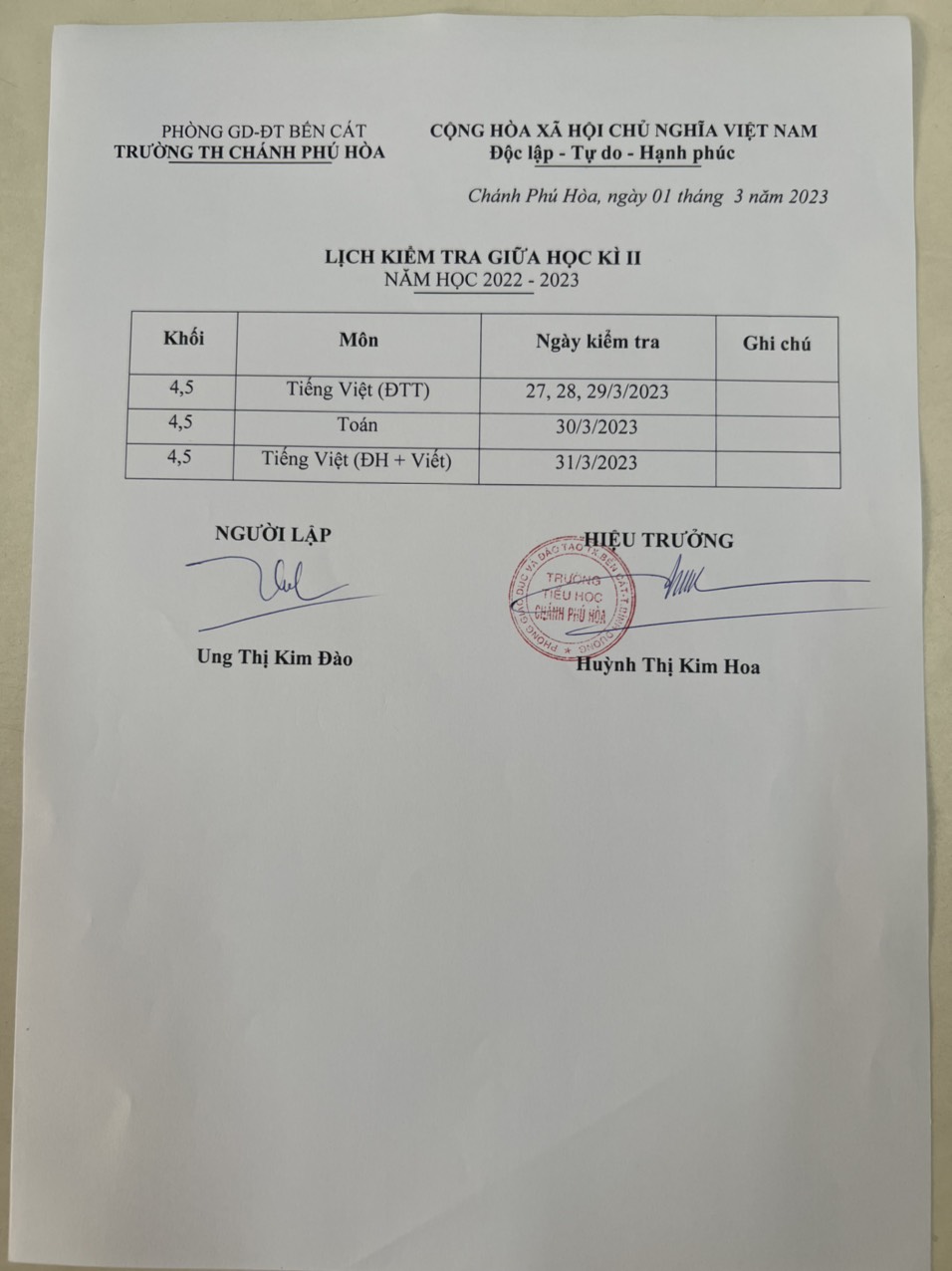 LỊCH KIỂM TRA GHKII NĂM HỌC 2022-2023