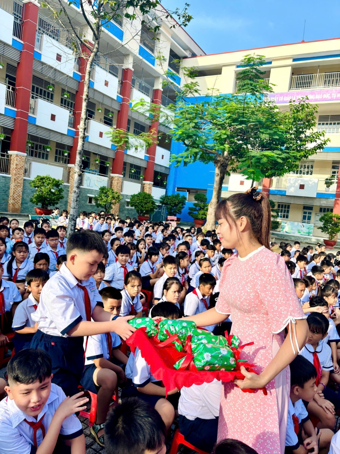 🍬 Trao tặng Giấy khen gương "Người tốt - Việc tốt" của trường cho em Lê Đức Bảo Khánh (5/4) đã có hành động đẹp "Nhặt được của rơi trả lại người bị mất".
