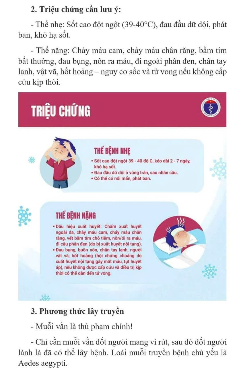 📣📣📣[Tình hình dịch bệnh sốt xuất huyết, tay chân miệng trên địa bàn TP. Hồ Chí Minh rất nhiều. Tính từ ngày 22/09/2025 đến ngày 28/09/2025 (tuần 39), trên địa bàn TP. Hồ Chí Minh ghi nhận 2.083 trường hợp mắc bệnh sốt xuất huyết, tăng 0,2% so với trung bình 4 tuần trước. Tổng số ca sốt xuất huyết tích lũy từ đầu năm 2025 đến tuần 39 là 38.540 ca. Trong tuần 39, TP. Hồ Chí Minh cũng ghi nhận 712 trường hợp mắc bệnh tay chân miệng, tăng 49,8% so với trung bình 4 tuần trước. Tổng số ca tay chân miệng tích lũy từ đầu năm 2025 đến tuần 39 là 22.514 ca. 🍀 Để phòng bệnh tay chân miệng và sốt xuất huyết, người dân cần tiếp tục thực hiện các biện pháp theo khuyến cáo của Ngành Y tế. 🦟 CẢNH BÁO MÙA DỊCH SỐT XUẤT HUYẾT – CHỦ ĐỘNG PHÒNG BỆNH ĐỂ BẢO VỆ GIA ĐÌNH BẠN! 🦟 Hiện nay, dịch sốt xuất huyết đang bước vào mùa cao điểm với nguy cơ bùng phát và diễn biến phức tạp nếu không có các biện pháp phòng chống kịp thời và hiệu quả. 📌 Sốt xuất huyết là gì? Là bệnh truyền nhiễm cấp tính do vi rút Dengue gây ra, lây truyền qua muỗi vằn. Bệnh có thể gây ra các biến chứng nguy hiểm, thậm chí tử vong nếu không được điều trị kịp thời. 📍 Triệu chứng cần lưu ý: 🔹 Thể nhẹ: Sốt cao đột ngột (39-40°C), đau đầu dữ dội, phát ban, khó hạ sốt. 🔹 Thể nặng: Chảy máu cam, chảy máu chân răng, bầm tím bất thường, đau bụng, nôn ra máu, đi ngoài phân đen, chân tay lạnh, vật vã, hốt hoảng – nguy cơ sốc và tử vong nếu không cấp cứu kịp thời. 🦟 Muỗi vằn là thủ phạm chính! Chỉ cần muỗi vằn đốt người mang vi rút, sau đó đốt người lành là đã có thể lây bệnh. Loài muỗi truyền bệnh chủ yếu là Aedes aegypti.